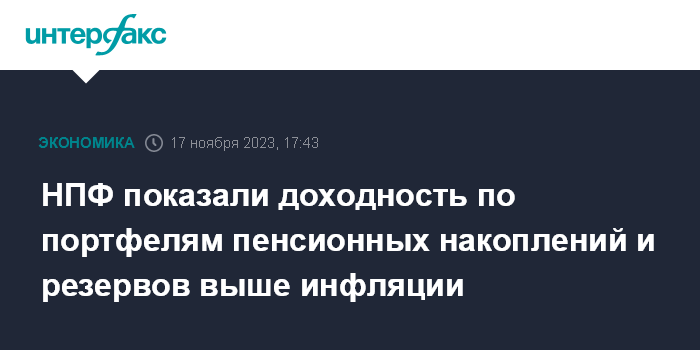 НПФ показали доходность по портфелям пенсионных накоплений и резервов выше инфляции