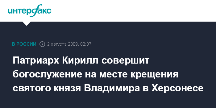 Севастополь. 2 августа. ИНТЕРФАКС - Патриарх Московский и всея Руси Кирилл в воскресенье совершит Божественную литургию в Херсонесе под Севастополем, на месте, где принял таинство крещения святой равноапостольный князь Владимир.