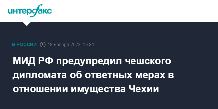 МИД РФ предупредил чешского дипломата об ответных мерах в отношении имущества Чехии