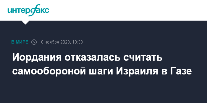 Иордания отказалась считать самообороной шаги Израиля в Газе