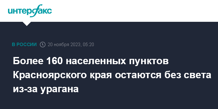 Более 160 населенных пунктов Красноярского края остаются без света из-за урагана