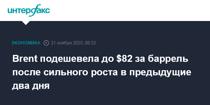 Brent подешевела до $82 за баррель после сильного роста в предыдущие два дня