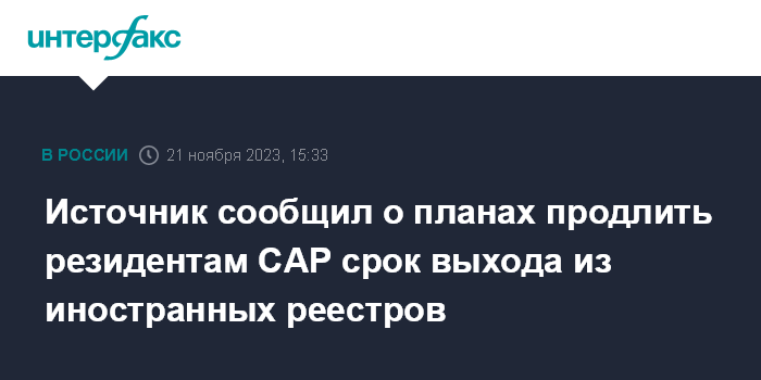Источник сообщил о планах продлить резидентам САР срок выхода из иностранных реестров
