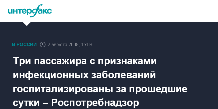 Как сообщает в воскресенье Роспотребнадзор, сутками ранее "при проведении санитарно-карантинного контроля, выявлено три пассажира с признаками инфекционных заболеваний".