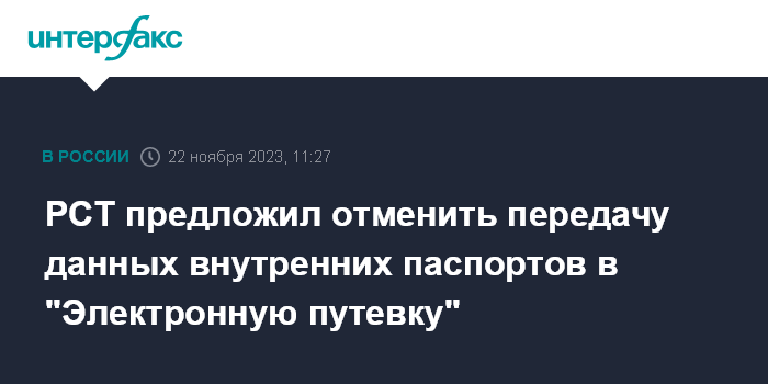 РСТ предложил отменить передачу данных внутренних паспортов в "Электронную путевку"