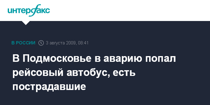 Москва. 3 августа. INTERFAX.RU - В Подмосковье на Рублево-Успенском шоссе в ДТП попал рейсовый автобус. Как сообщил "Интерфаксу" источник в правоохранительных органах Московской области, в 07:30 в районе 22-го - 23-го км Рублево-Успенского шоссе произошло лобовое столкновение автобуса и легкового автомобиля, после которого водитель автобуса не смог удержать машину на шоссе. Автобус выехал с дороги в кювет и перевернулся.