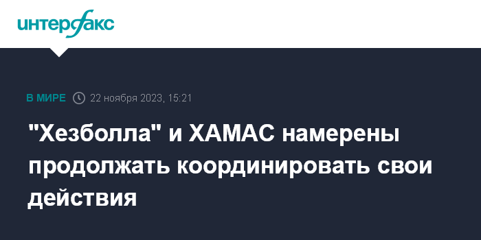 Москва. 22 ноября. INTERFAX.RU - Лидеры ливанского проиранского движения "Хезболла" и радикальной палестинской группировки ХАМАС договорились продолжить координацию действий "до полной победы" над Израилем, сообщили иранские СМИ.