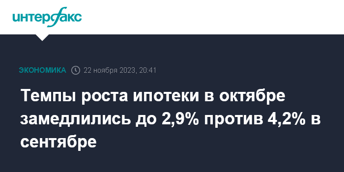 Темпы роста ипотеки в октябре замедлились до 2,9% против 4,2% в сентябре