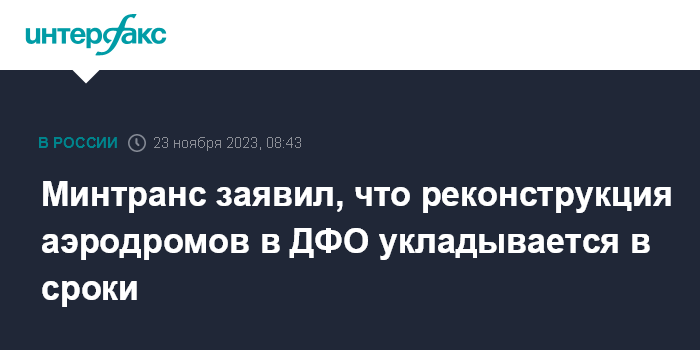 Москва. 23 ноября. INTERFAX.RU - Реконструкция и строительство аэродромной инфраструктуры в Дальневосточном федеральном округе проводится в сроки, утвержденные паспортом федерального проекта, сообщили "Интерфаксу" в пресс-службе федерального Минтранса.