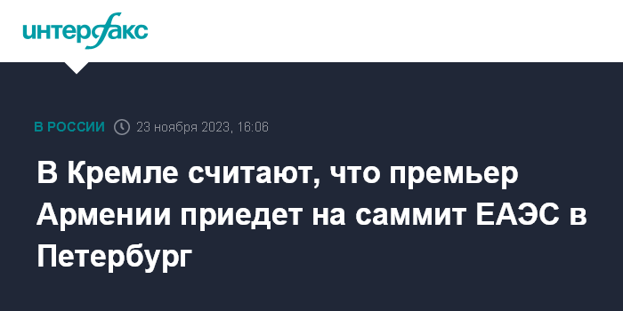 В Кремле считают, что премьер Армении приедет на саммит ЕАЭС в Петербург