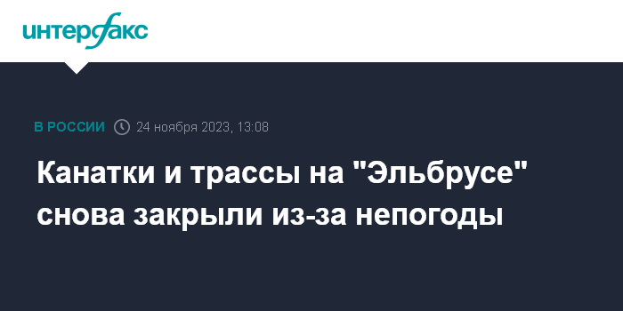 Москва. 24 ноября. INTERFAX.RU - Все горнолыжные трассы и канатные дороги курорта "Эльбрус" в Кабардино-Балкарии в пятницу закрыли в связи с ухудшением погоды, сообщила администрация курорта.