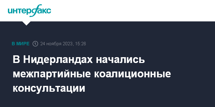 Москва. 24 ноября. INTERFAX.RU - В Нидерландах в пятницу начались межпартийные консультации по формированию коалиции.