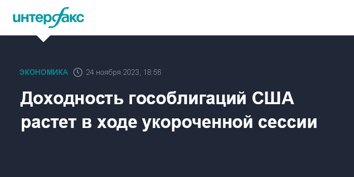 Доходность гособлигаций США растет в ходе укороченной сессии