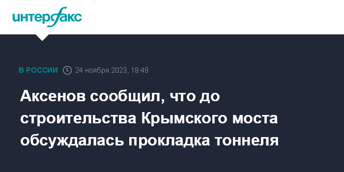 Аксенов сообщил, что до строительства Крымского моста обсуждалась прокладка тоннеля