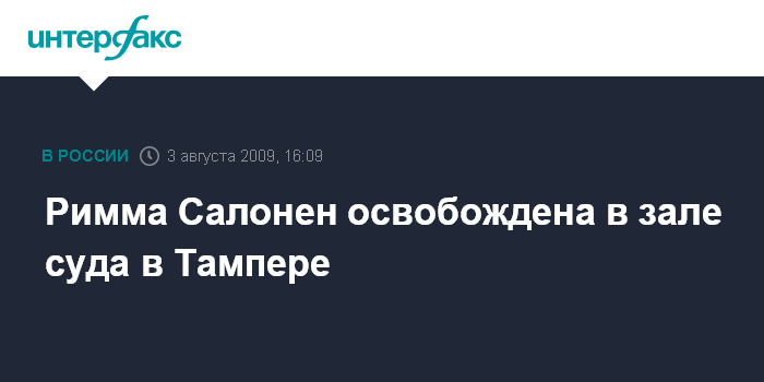 Хельсинки. 3 августа. INTERFAX.RU - Суд финского города Тампере принял в понедельник решение освободить россиянку Римму Салонен.