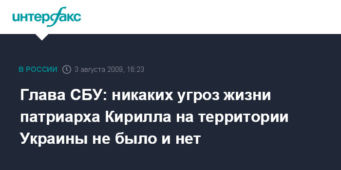 Москва. 3 августа. INTERFAX.RU - Никаких угроз жизни и здоровью патриарха Московского и всея Руси Кирилла на территории Украины не было и нет, утверждает глава Службы безопасности Украины Валентин Наливайченко.