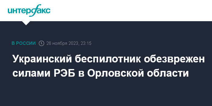 Москва. 26 ноября. INTERFAX.RU - Губернатор Орловской области Андрей Клычков сообщил об обезвреживании беспилотника над регионом.