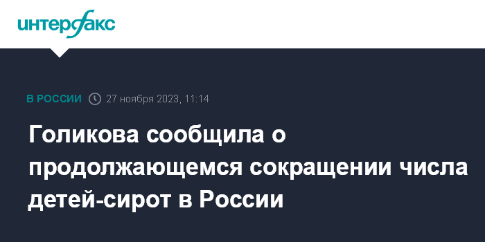 "У нас сохраняется положительная динамика по показателям, которые характеризуют сокращение численности выявленных детей-сирот и детей, оставшихся без попечения родителей и их семейное устройство. В 2022 году таких детей стало на 3,2% меньше, чем в 2021 году", - сказала она на совещании главы правительства с вице-премьерами.