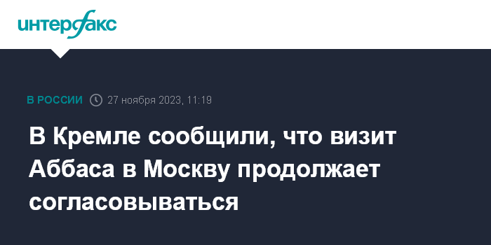 В Кремле сообщили, что визит Аббаса в Москву продолжает согласовываться