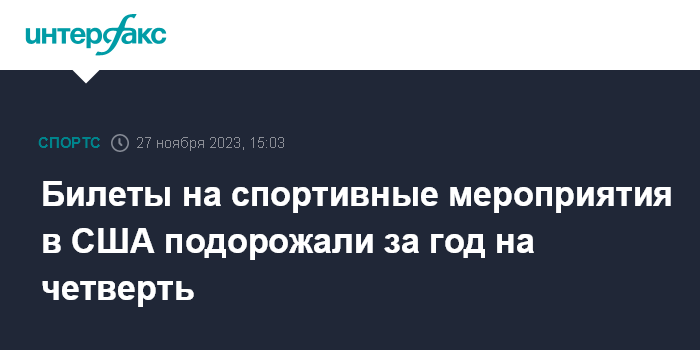 Билеты на спортивные мероприятия в США подорожали за год на четверть