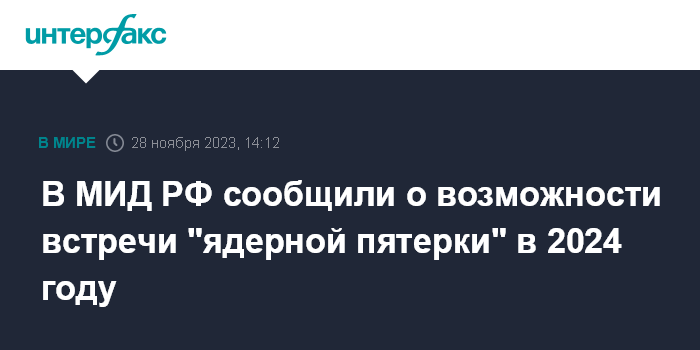 В МИД РФ сообщили о возможности встречи "ядерной пятерки" в 2024 году