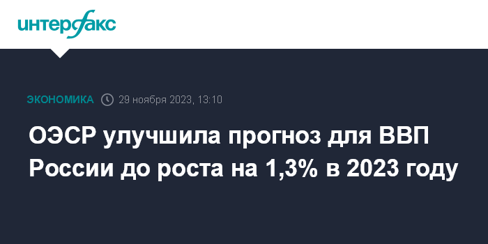 ОЭСР улучшила прогноз для ВВП России до роста на 1,3% в 2023 году
