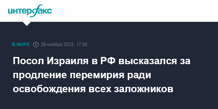 Посол Израиля в РФ высказался за продление перемирия ради освобождения всех заложников