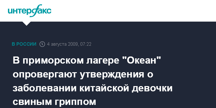 В приморском лагере "Океан" опровергают утверждения о заболевании китайской девочки свиным гриппом