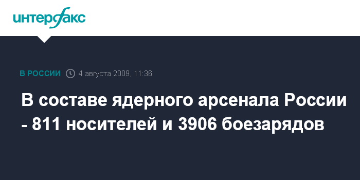 В составе ядерного арсенала России - 811 носителей и 3906 боезарядов