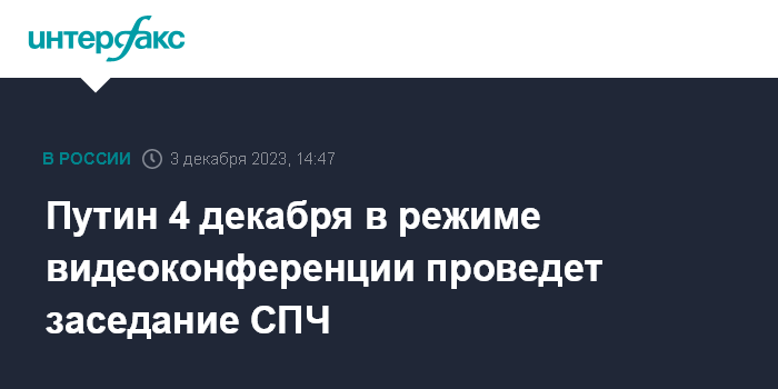 Путин 4 декабря в режиме видеоконференции проведет заседание СПЧ