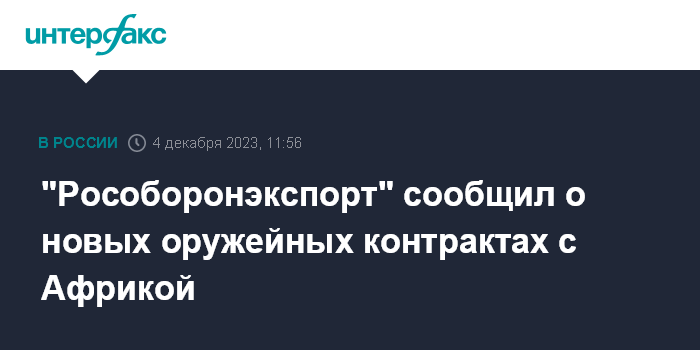 Москва. 4 декабря. INTERFAX.RU - "Рособоронэкспорт" сообщил, что компания по итогам 2023 года заключит оружейные контракты со странами Африки на сумму более $5,2 млрд.