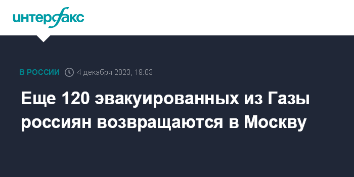 Еще 120 эвакуированных из Газы россиян возвращаются в Москву