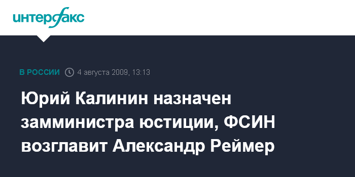 Юрий Калинин назначен замминистра юстиции, ФСИН возглавит Александр Реймер