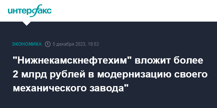 "Нижнекамскнефтехим" вложит более 2 млрд рублей в модернизацию своего механического завода"