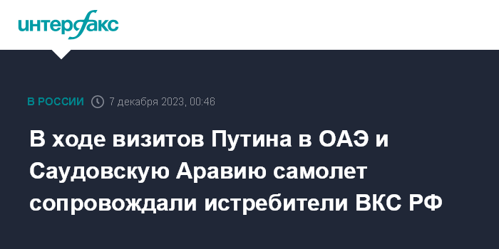 В ходе визитов Путина в ОАЭ и Саудовскую Аравию самолет сопровождали истребители ВКС РФ
