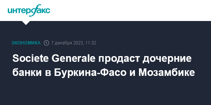 Societe Generale продаст дочерние банки в Буркина-Фасо и Мозамбике