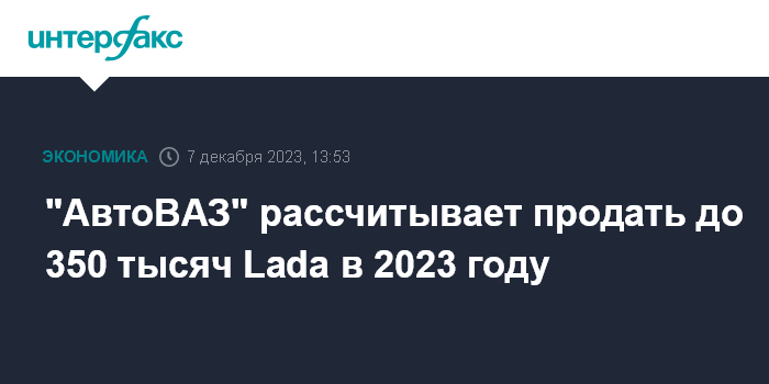 Москва. 7 декабря. INTERFAX.RU - "АвтоВАЗ" в 2023 году планирует продать до 350 тысяч автомобилей Lada, сообщил журналистам в кулуарах форума "Россия зовет" президент компании Максим Соколов.