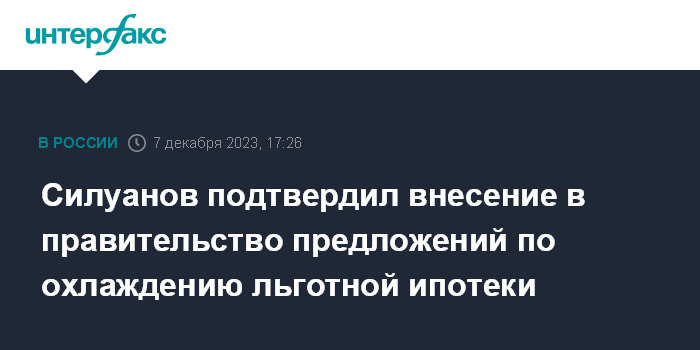 Москва. 7 декабря. INTERFAX.RU - Министр финансов Антон Силуанов на форуме ВТБ подтвердил, что его ведомство внесло в правительство предложения по изменению условий льготной ипотеки для стабилизации этого сегмента.