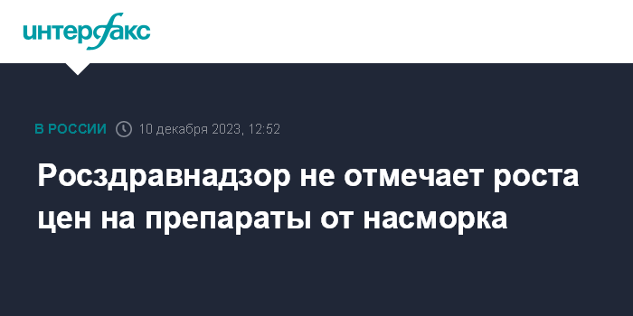 Москва. 10 декабря. INTERFAX.RU - Значимого роста цен на препараты от насморка из перечня жизненно необходимых и важнейших (ЖНВЛП) не отмечается, сообщили в Росздравнадзоре.