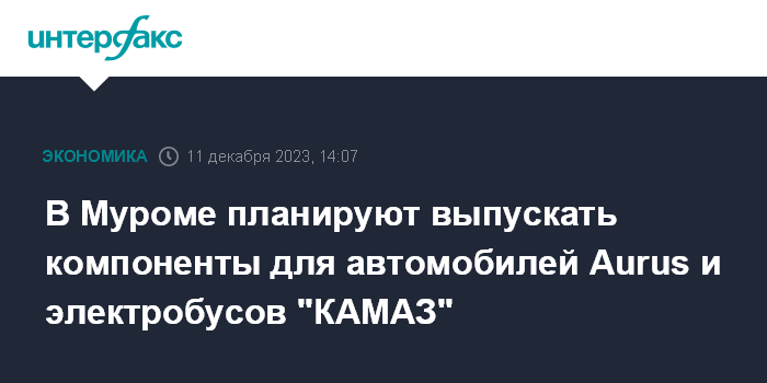 В Муроме планируют выпускать компоненты для автомобилей Aurus и электробусов "КАМАЗ"