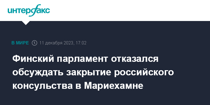 Финский парламент отказался обсуждать закрытие российского консульства в Мариехамне