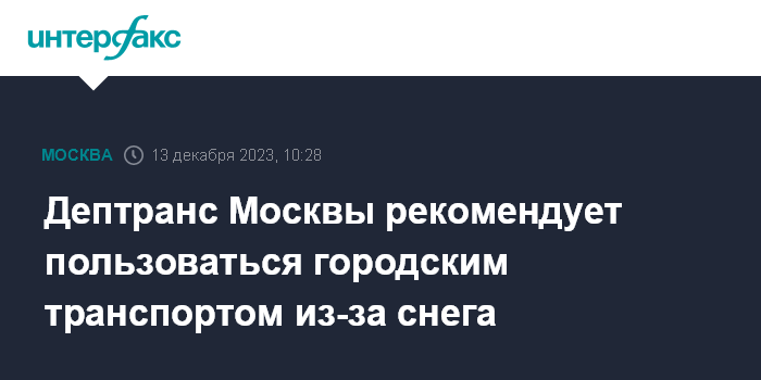 Москва. 13 декабря. INTERFAX.RU - Московский департамент транспорта сообщил о штатной работе городского транспорта в снежную погоду и рекомендовал москвичам передвигаться по городу на метро, МЦК или МЦД.