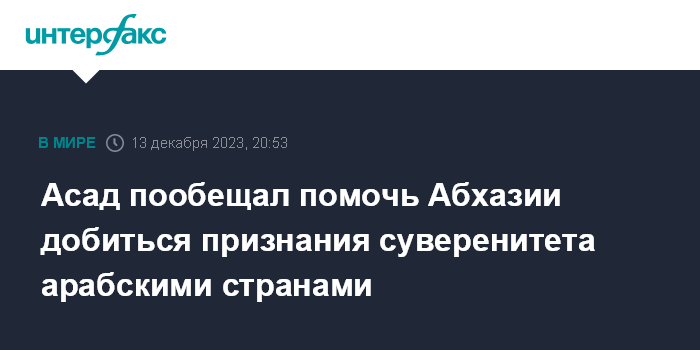Асад пообещал помочь Абхазии добиться признания суверенитета арабскими странами