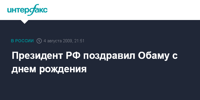"Считаю, что итоги московской встречи позволяют говорить о перспективах выстраивания конструктивного сотрудничества России и США на основе принципов взаимного уважения и учета интересов друг друга", - говорится в поздравлении, которое Медведев направил Бараку Обаме в связи с днем рождения президента США.