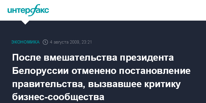 После вмешательства президента Белоруссии отменено постановление правительства, вызвавшее критику бизнес-сообщества