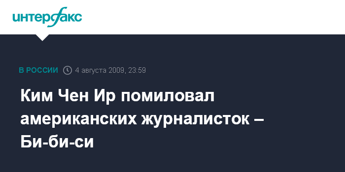 Лондон. 4 августа. ИНТЕРФАКС - Лидер КНДР Ким Чен Ир помиловал и распорядился освободить двух американских журналисток после того, как находящийся в этой стране бывший президент США Билл Клинтон извинился за их поведение, сообщила во вторник вечером британская корпорация Би-би-си со ссылкой на государственное информационное агентство КНДР.