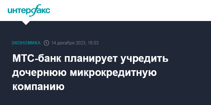 МТС-банк планирует учредить дочернюю микрокредитную компанию