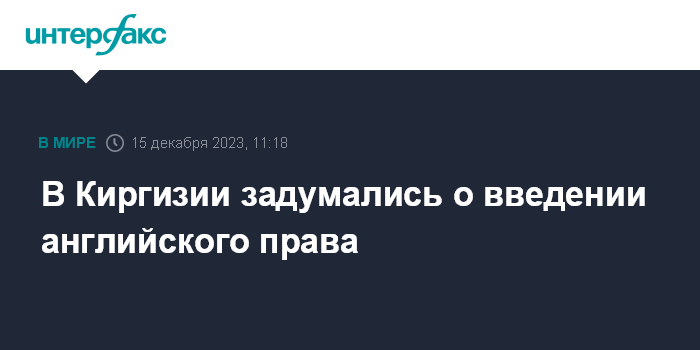 Москва. 15 декабря. INTERFAX.RU - Киргизия рассматривает вопрос введения английской правовой системы, заявил на Народном курултае президент страны Садыр Жапаров.