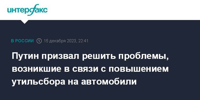 Москва. 15 декабря. INTERFAX.RU - Президент РФ Владимир Путин заявил о необходимости обратить внимание на проблемы людей, купивших машины за рубежом незадолго до введения повышенного утилизационного сбора на такие приобретения.