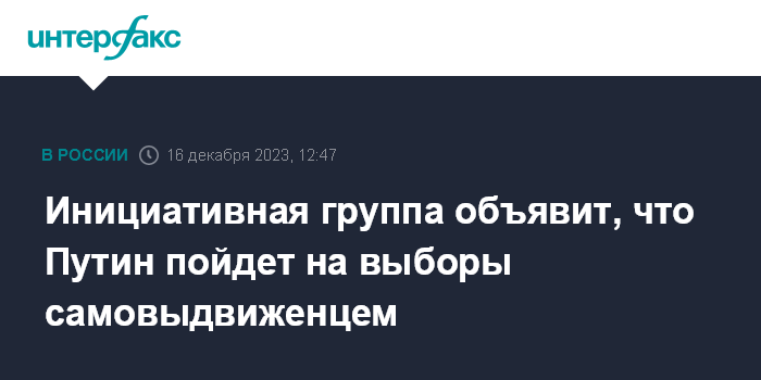 Инициативная группа объявит, что Путин пойдет на выборы самовыдвиженцем
